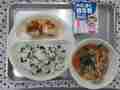 ☆献立☆ わかめご飯 牛乳 揚げ出し豆腐の薬味ソースかけ さつま汁 揚げ出し豆腐は、調理員さんが豆腐を切って、でん粉をつけ、崩れたりくっつかないように、少しずつ丁寧に油で揚げてくれました。しょうがやにんにくの入った薬味ソースがよく合います。 クイズです。今日のさつま汁に入っている鶏肉は、3つの食品グループで何色のなかまでしょうか? ...»続きを読む