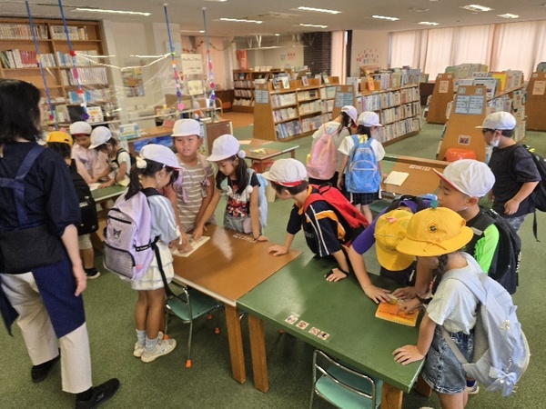 貸切の図書館をじっくりと見学した2年生の大東っ子たち。