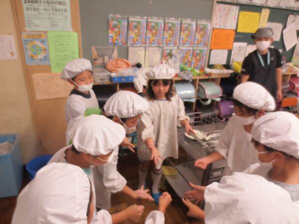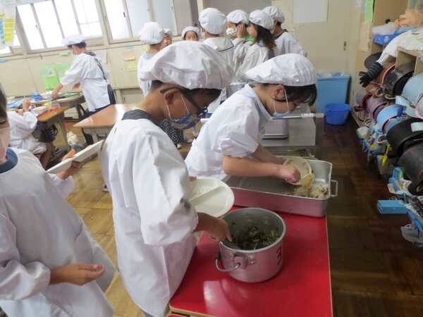 3年3組では、残った里芋ご飯が「おにぎり」に変身。