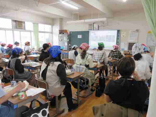 児童が給食を準備している様子を各教室で参観した後、実際に給食を試食しました。