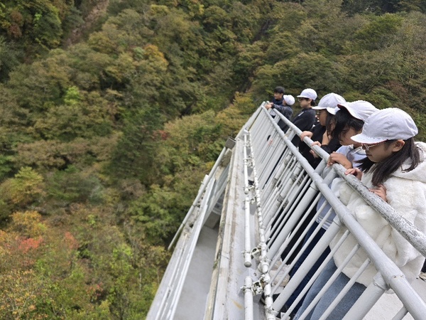 エレベーターに乗って観瀑台を目指します。音は聞こえど、なかなか姿を現さない華厳の滝に、ドキドキワクワクの子どもたちです。