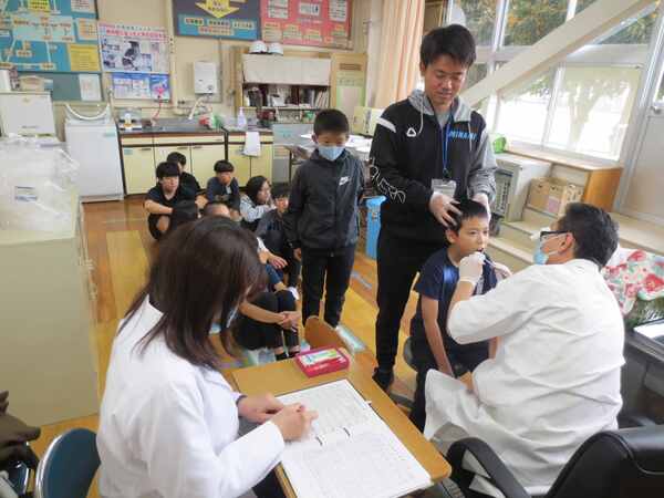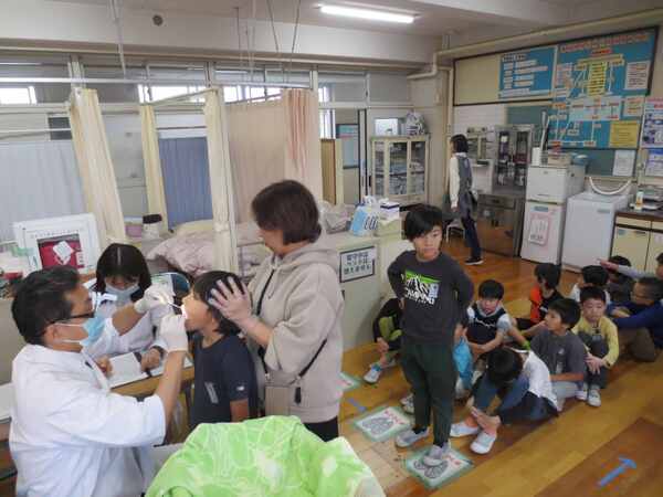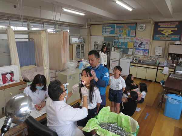学校歯科医の長田先生、歯科衛生士の上山さんが来て、診てくださいました。