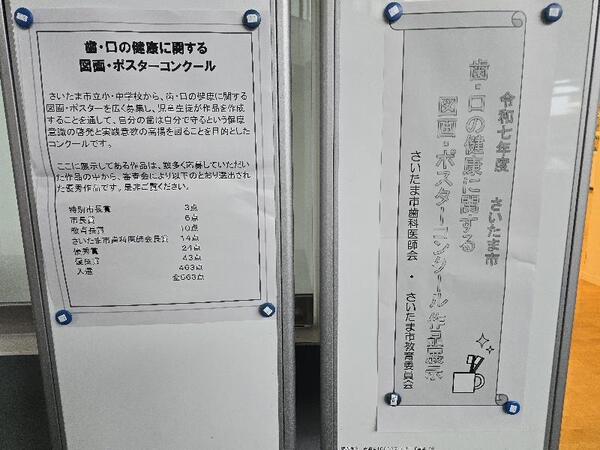 10月25日(土)・26日(日)の2日間、プラザノースで「歯・口の健康に関する図画・ポスターコンクール」の作品展示会が開催されています。