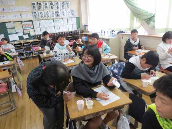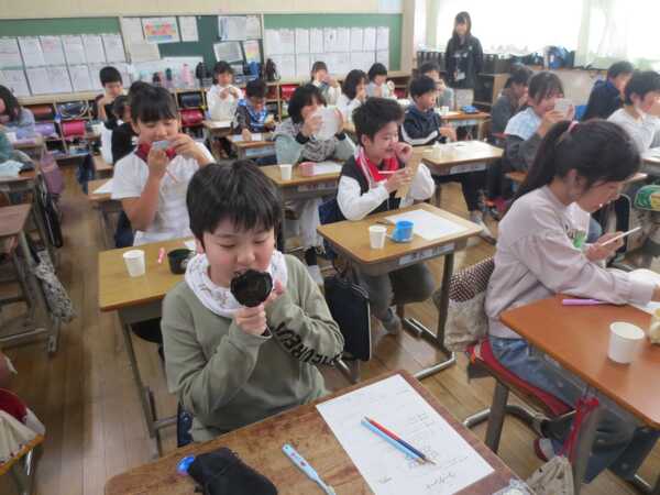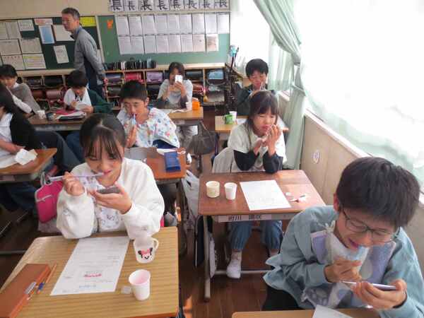 歯肉の観察をしたり、プラーク(歯垢)の染め出しをしたりしながら、自分の口の中の様子について考えました。