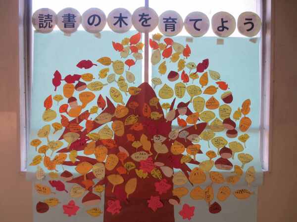10月中旬から始めた読書の木は、葉っぱがいっぱいはられて大きく育っています。