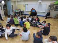 読書月間の取組として「さいたま市よい本を読む運動推進員会」の皆様が、読み聞かせをしてくださっています。今日は、ひまわり学級の日です。