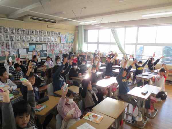 「今日の4年4組は、27人の人がハンカチ・ティッシュを忘れずに持ってきました。」