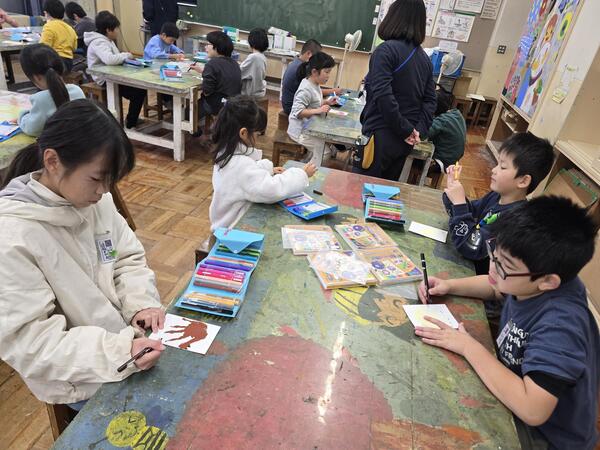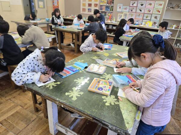 カラーペンを持って、みんな真剣にかいていました。