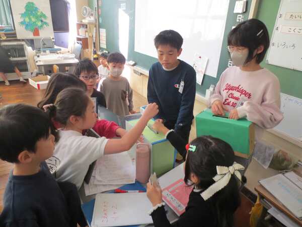 朝の時間になると、募金箱を持った代表委員が各教室を訪問します。