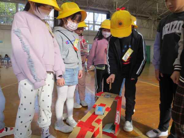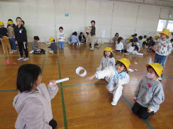 2年生は、生活科「うごく うごく わたしのおもちゃ」で作ったおもちゃを使って、1年生と遊ぶ会を開催しました。