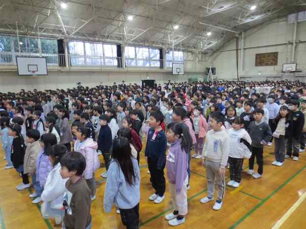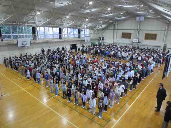 校歌斉唱では、体育館にきれいな歌声が響きました。