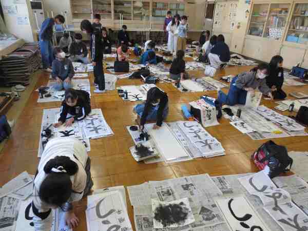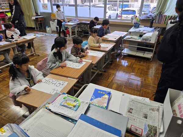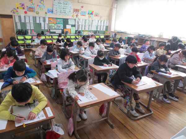どの教室でも、お手本を見ながら真剣に書いていました。素晴らしい集中力でしたね。きっとよい作品が仕上がったことと思います。
