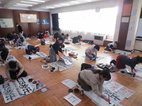 書きぞめ競書会で書いた作品は、各学級で掲示して「校内書きぞめ展」を開催します。