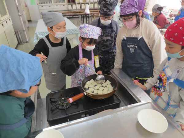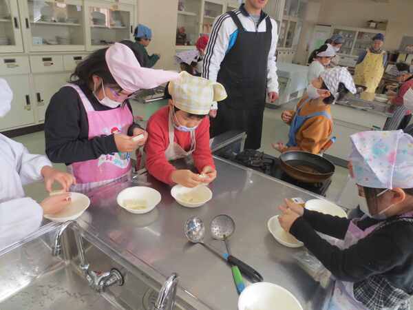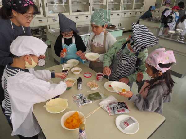 などと、高学年が声をかけ、グループで協力して調理していきます。