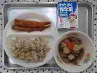 給食週間2日目は、さいたま市の友好都市「南会津町」がある福島県の料理です。いろいろな野菜をざくざく切って煮るため、ざくざく煮と呼ばれています。今日は、だいこんやにんじん、ごぼうなどの野菜を入れました。