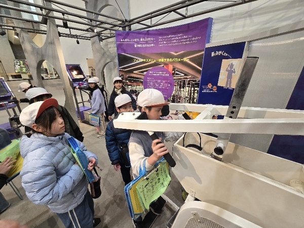 環境科学国際センターでは、グループで展示を見たり、体験したりしながら、問題を解きました。