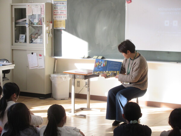 それぞれのクラスで、図書ボランティアさんが趣向を凝らして読み聞かせしていただきました。例えば、「モネの庭」が実際にあること、日本にも許可を得て作成した庭があること。「まてないの」では、「ヨシタケシンスケ」さんの本が、英訳された本も紹介し、世界中で親しまれていることなど、本を読むだけでなく、本を通して様々な世界の見方を教えてくれました。