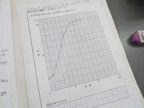 1分おきに、水の温度と水の様子を記録します。