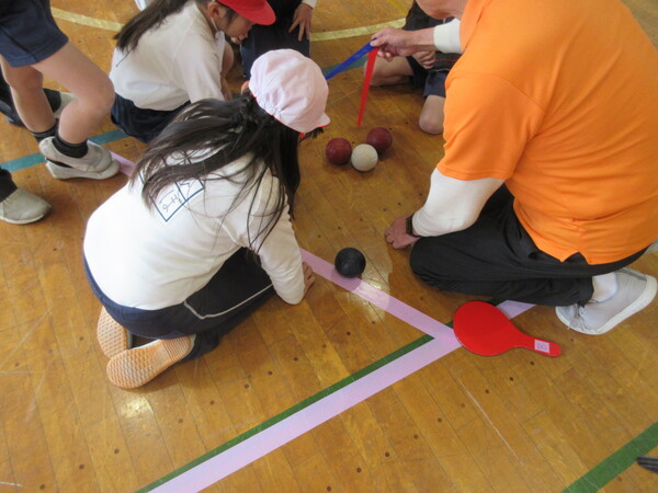 授業の終了後、講師の方たちから子どもたちのボッチャを楽しむ姿を見てとてもほめていました。今回、ボッチャを通して、競技を楽しむ心や態度を学びました。子どもたちにはこの学びを今後も伸ばしてほしいと思います。