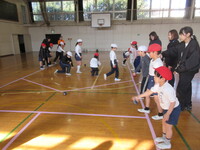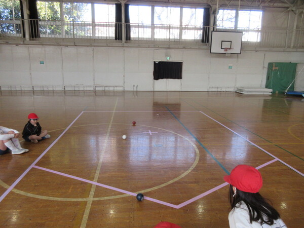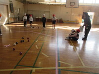 今日は、試合を通じてボッチャを知ってもらうため、紹介を少なくし、投げる練習をしました。子どもたちは、ボッチャの球に親しみ、感覚を身に付けました。