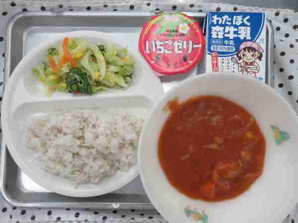 今日は人気のカレーです。バターのコクとココナッツの風味が効いた「バターチキンカレー」にしました。いつものカレーとは少し違った味わいが楽しめます。ご飯と一緒に食べてください。