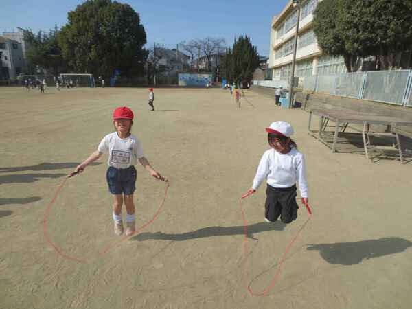 という声に振り返ると、なわとびを持った2年生の女の子が2人。