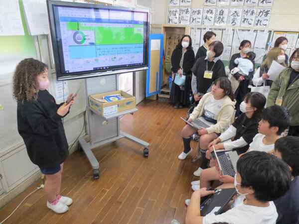 5年生は、総合的な学習の時間で取り組んでいる「SDGs」をテーマにしたプレゼンの授業でした。