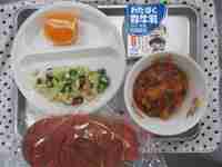 ポテトのミートソース和えは、蒸したじゃがいもをミートソースと和えました。果物は今が旬の不知火です。不知火はデコポンという名前でも知られている柑橘類の果物で、甘みが強いのが特徴です。