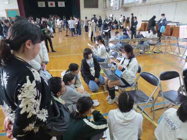 6年生は、学年合同で総合的な学習の時間のプレゼンです。