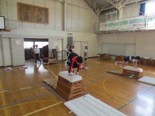 体育館では、4年生が「跳び箱運動」。