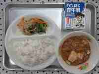 麻婆豆腐は、中国の四川省を代表する料理です。豆腐とひき肉を唐辛子みそのトウバンジャンで炒めた料理です。給食では、食べやすいように辛味をおさえています。