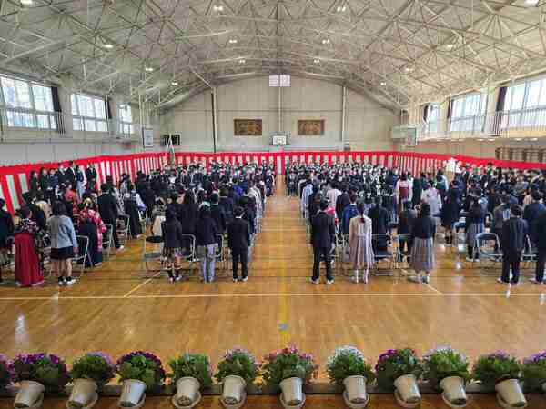 来賓や地域の皆様にもご臨席いただき、保護者の皆様、教職員が見守る中、111名の卒業生が巣立っていきました。