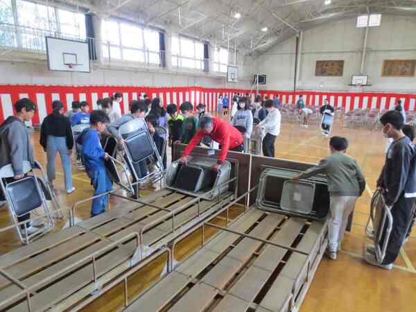 朝の時間には、卒業式で使ったいすの片付けを手伝ってくれました。