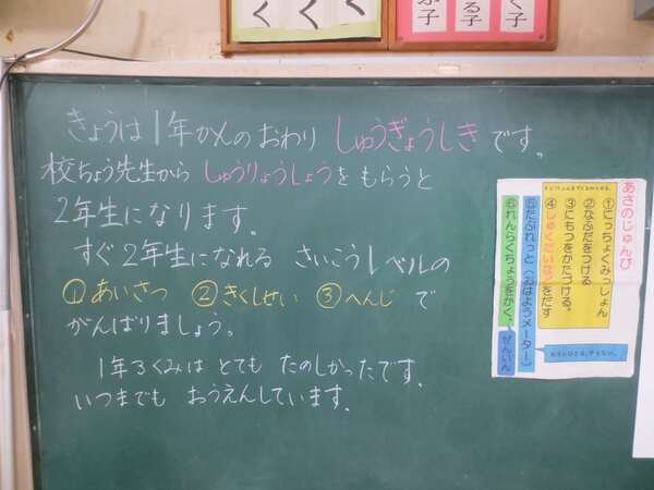 「一年間勉強をがんばったね。進んでプリンとに取り組んだり、漢字をたくさん覚えたりしました。」