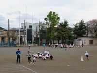 暖かな朝、春を通り越してしまいそうな勢いで、気温が上昇しています。本日は、この後天候が崩れる予報ですが、雨はまだ降らず。昨日の夕方先生方が校庭に引いてくれたラインを使い、3年生が徒競走のタイムを計っています。運動会の色分けの参考にするためです。「がんばれー」の仲間たちの元気な掛け声を受けながら、風にも負けず、自分の精一杯の力を出そうと次々とtoラックを駆け抜ける子どもたち。去年の自分と比べ、成長を感じてくれているかな、と校長室から眺めていました。