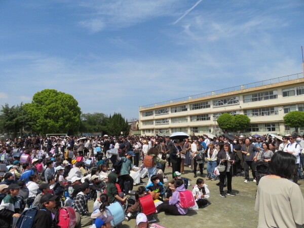 本日は、土曜授業日。学校公開と引き渡し訓練が行われました。多くの保護者、地域の皆様にご来校いただきありがとうございました。新年度が始まって1週間半。新しい教室の場所、新しいクラスの仲間、新しい担任の先生など、新年度の様子をご確認いただけたかなと思います。落ち着いて熱心に授業に取り組む姿が伝わればよいなと思います。その後、引き取り訓練。震度5弱の地震発生を想定し、地震からの身の守り方、新しいクラスからの避難経路の確認等が行われました。真剣なまなざしで静かに避難行動をとることが大東っ子。とても素晴らしかったと思いますし、その行動が命を守ることに繋がります。保護者の皆様も整然とお待ちいただけたことで、スムーズに引き渡しを行うことができました。御協力ありがとうございました。