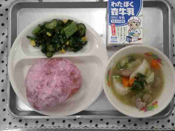 5月1日は、「さいたま市民の日」です。この日は、さいたま市が生まれた日です。今日は少し早いですが、さいたま市民の日給食にしました。レッズローズをイメージした揚げパンのビーツやポトフのたまねぎ、サラダの小松菜はさいたま市で採れたものです。さいたま市給食を食べてみんなでお祝いしましょう。